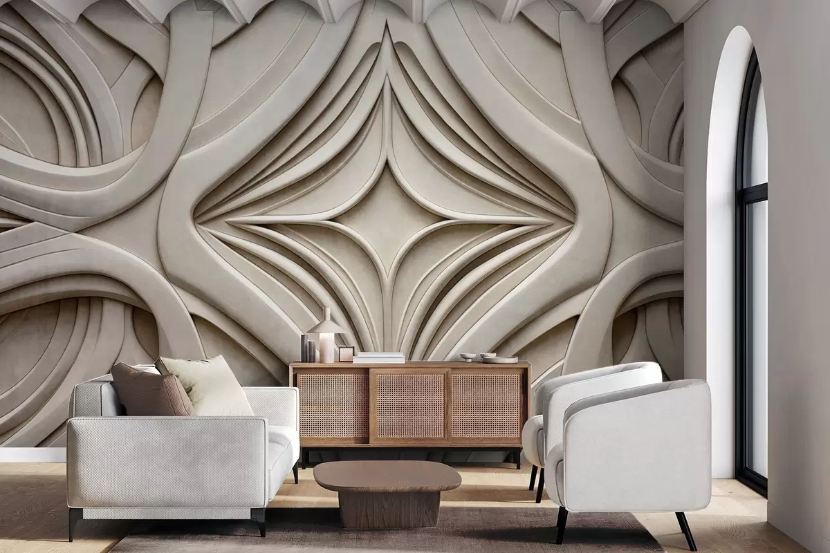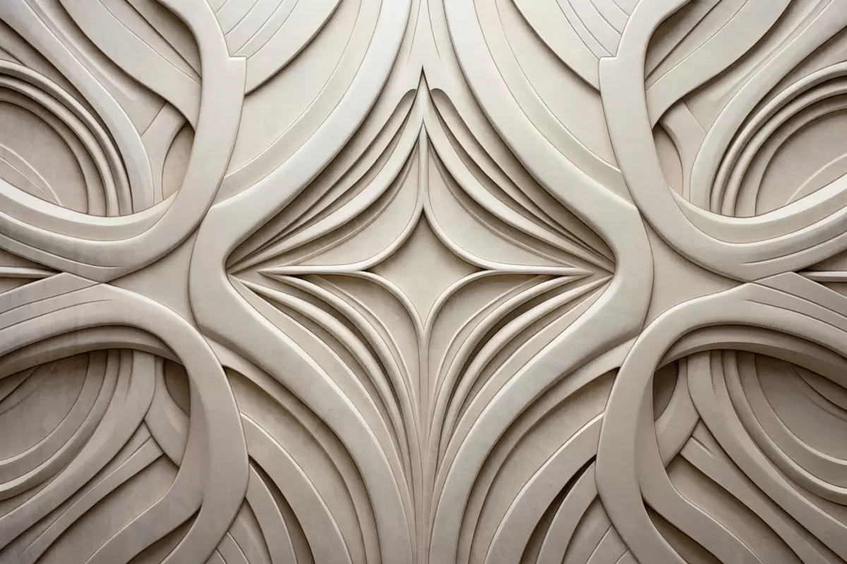 Тапете за зид Апстрактни симетрични текстурирани геометријски отисак, светло беж боја, арт деко стил, замршени детаљи бр. w09473