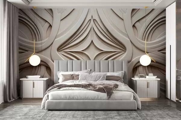 Тапете за зид Апстрактни симетрични текстурирани геометријски отисак, светло беж боја, арт деко стил, замршени детаљи бр. w09473