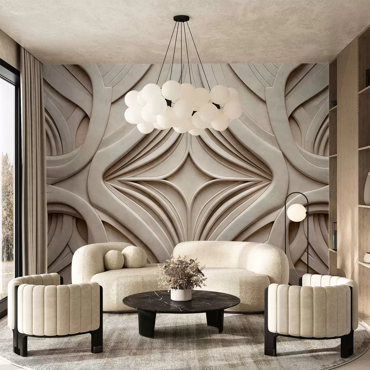 Тапете за зид Апстрактни симетрични текстурирани геометријски отисак, светло беж боја, арт деко стил, замршени детаљи бр. w09473