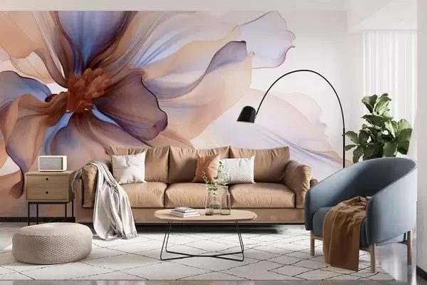 Тапете за зид Детаљан велики текстурирани цвет са белим, плавим и смеђим латицама, на белој позадини бр. w09498