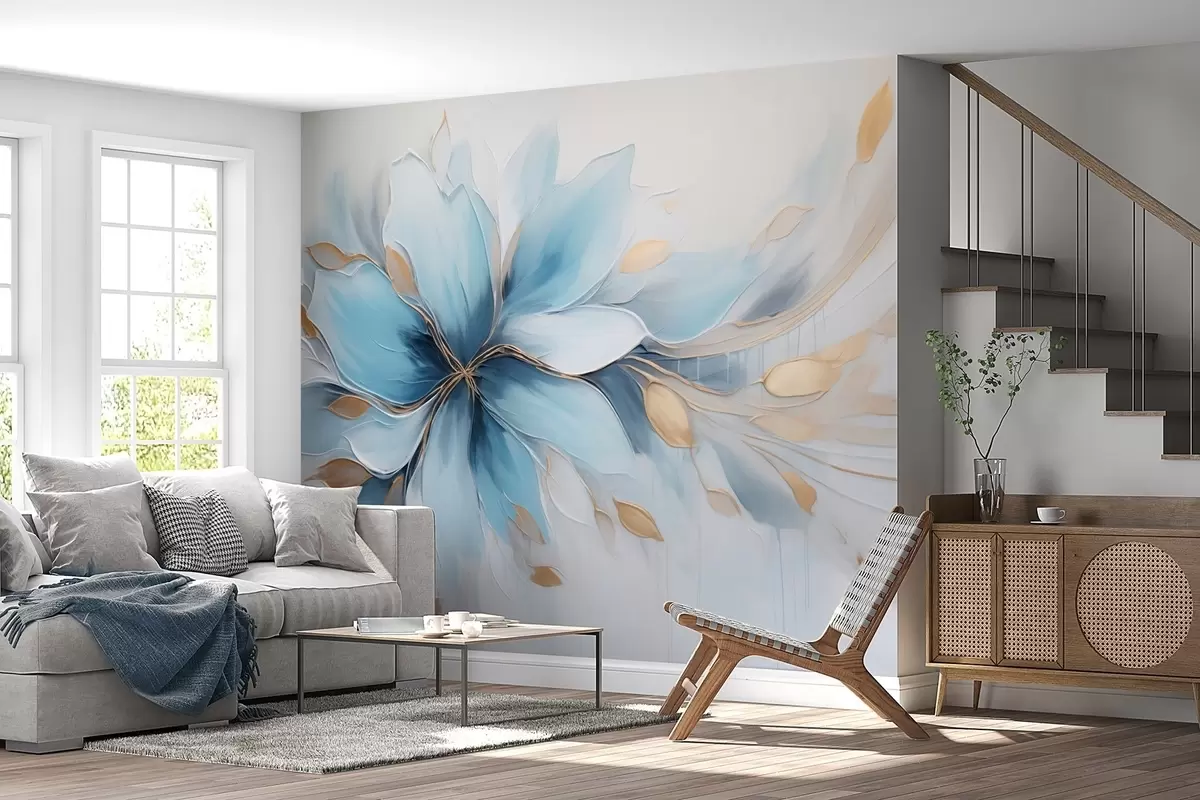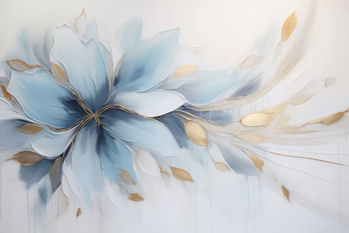 Тапете за зид Апстрактни плави цвет смирености са златним листовима бр. w09500