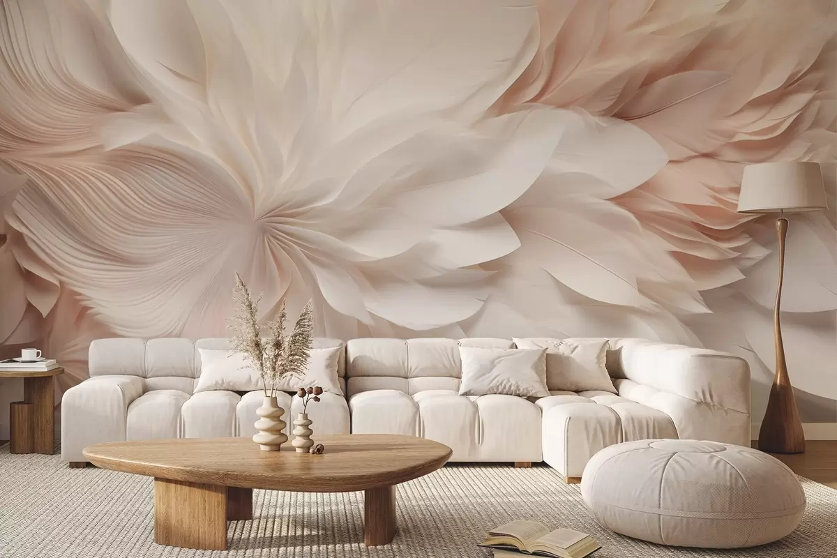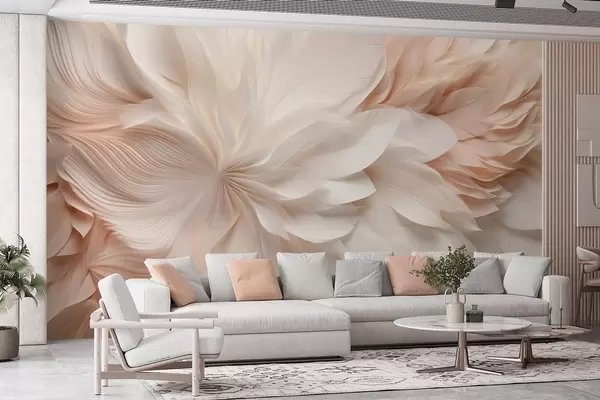 Тапете за зид Нежно апстрактно перје у покрету у беж и крем тоновима бр. w09509