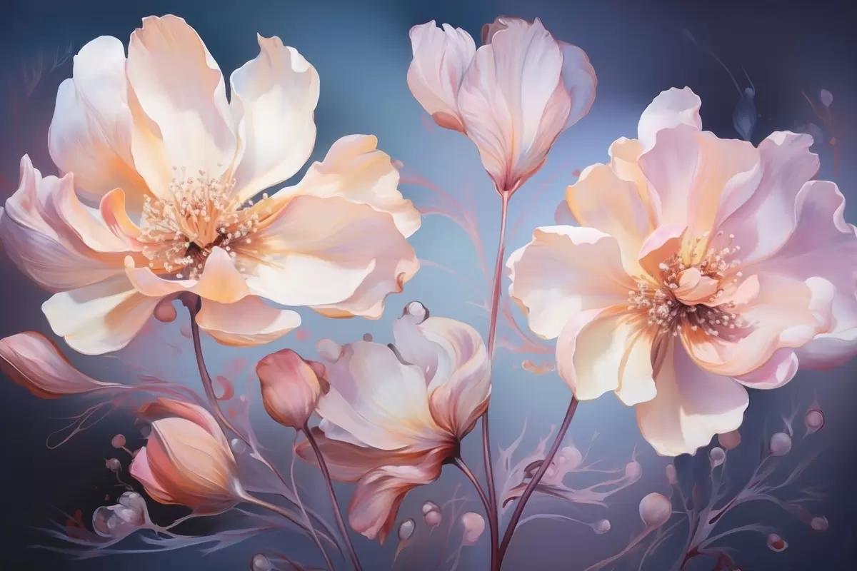 Тапете за зид Прозрачни божури боје руже и креме у акварел стилу на тамноплавој позадини бр. w09513