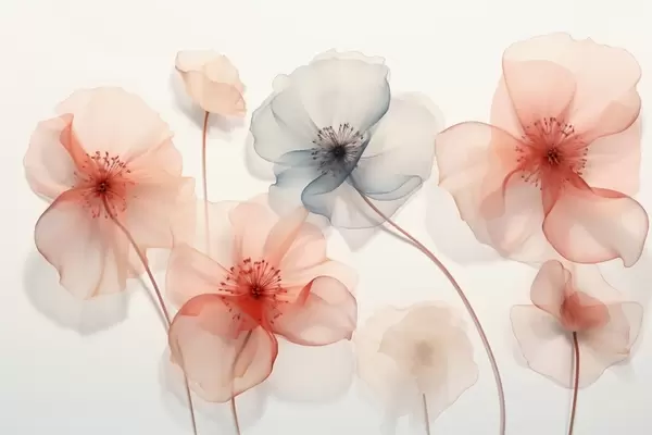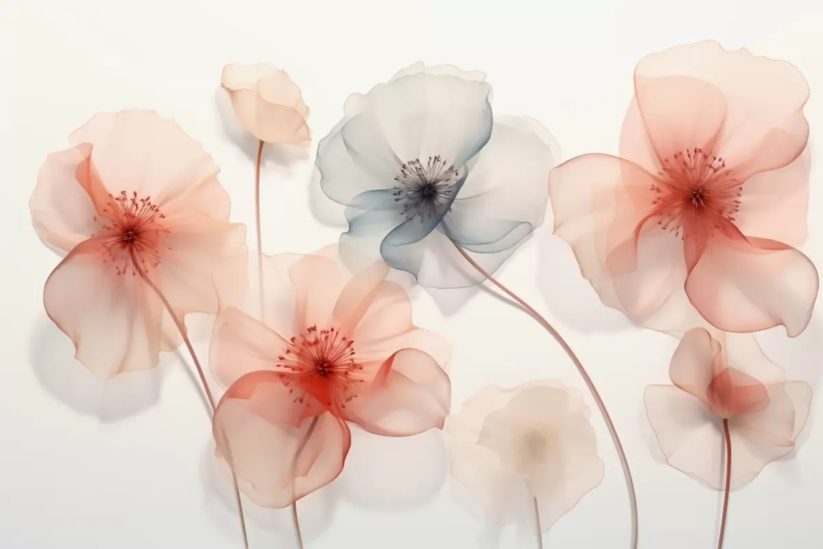 Тапете за зид Прозирно цвеће у црвеним и плавим тоновима бр. w09515