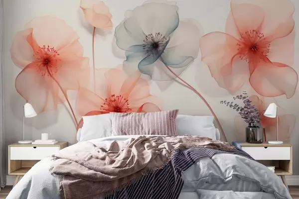 wall murals Прозирно цвеће у црвеним и плавим тоновима w09515