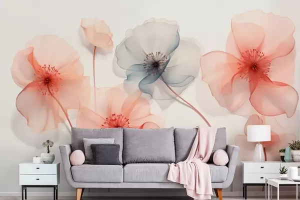 Тапете за зид Прозирно цвеће у црвеним и плавим тоновима бр. w09515