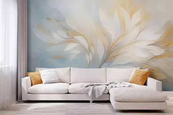 Тапете за зид Апстрактна композиција глатких облика налик перју у жутим и плавим тоновима бр. w09525