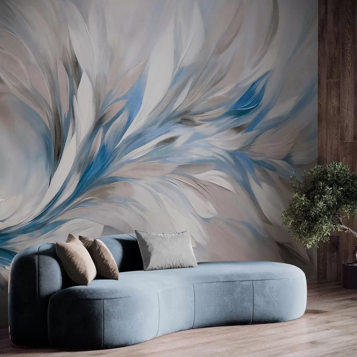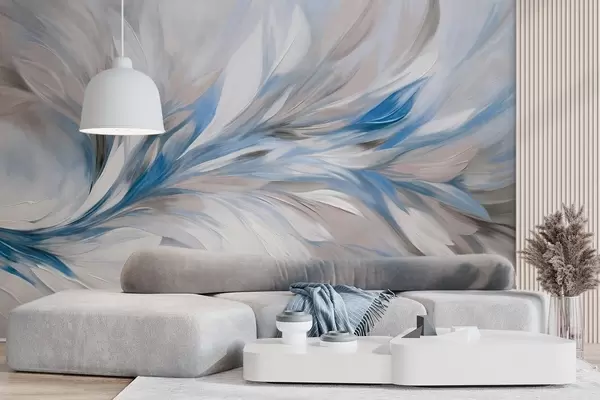 Тапете за зид Апстрактни стил сликања са белим, плавим и сивим текстурираним потезима четкице са меком, светлом позадином бр. w09552v1