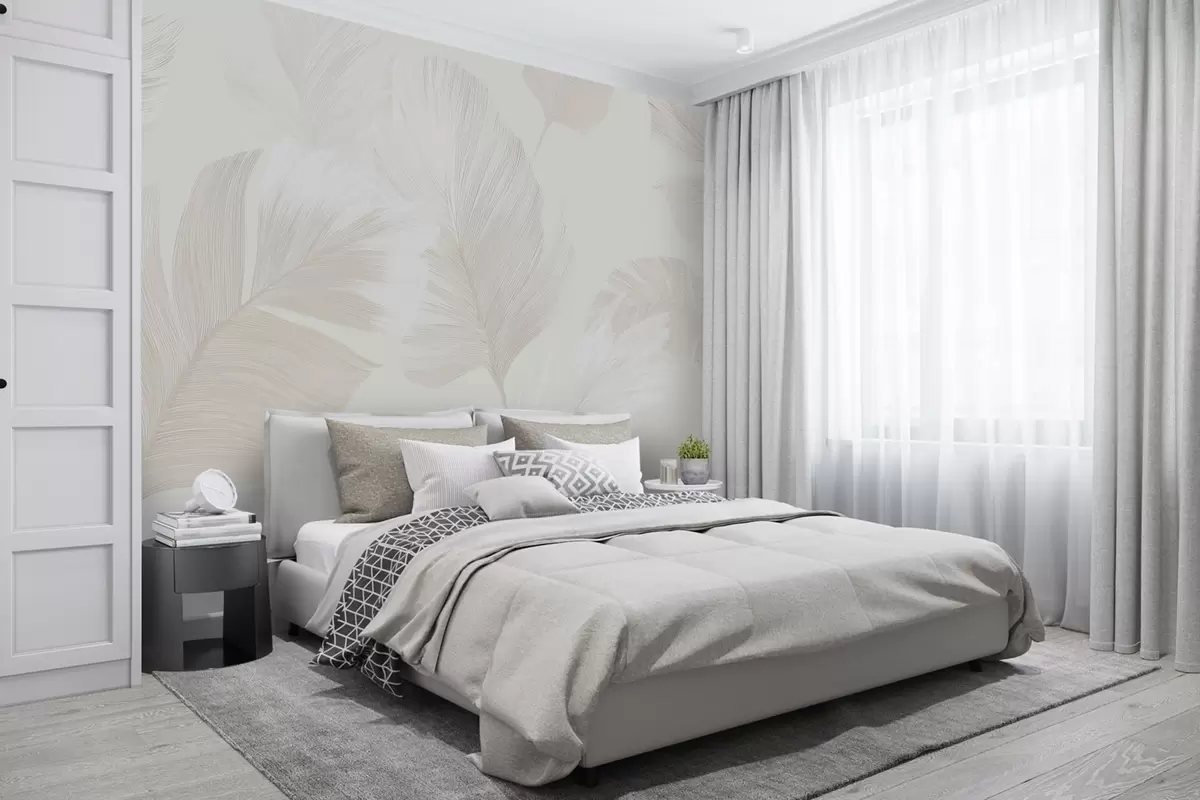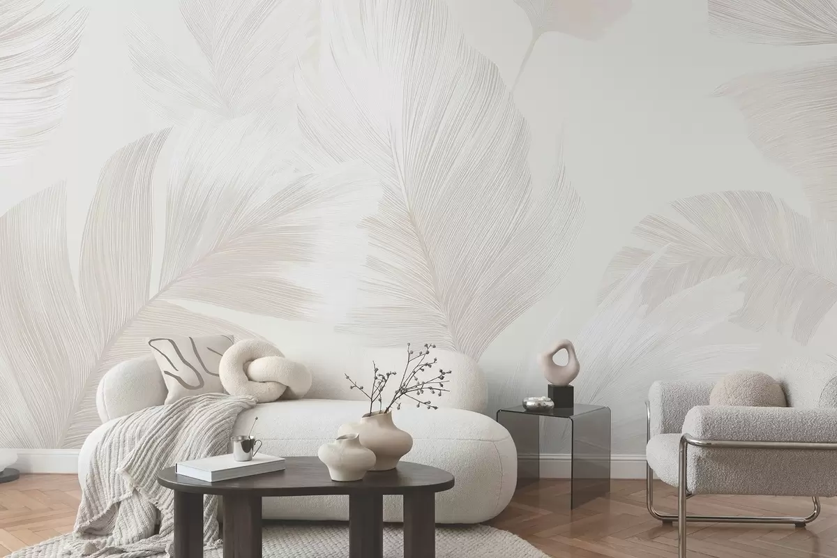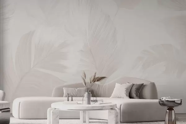 Тапете за зид Меко перје боје слоноваче у млечно беж тоновима бр. w09563