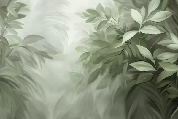 Тапете за зид Смеђе и беж лишће са меким, замућеним текстурираним лишћем, у сликарском стилу са видљивим потезима четкице бр. w09584