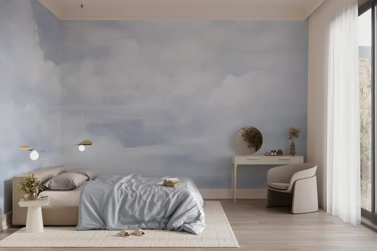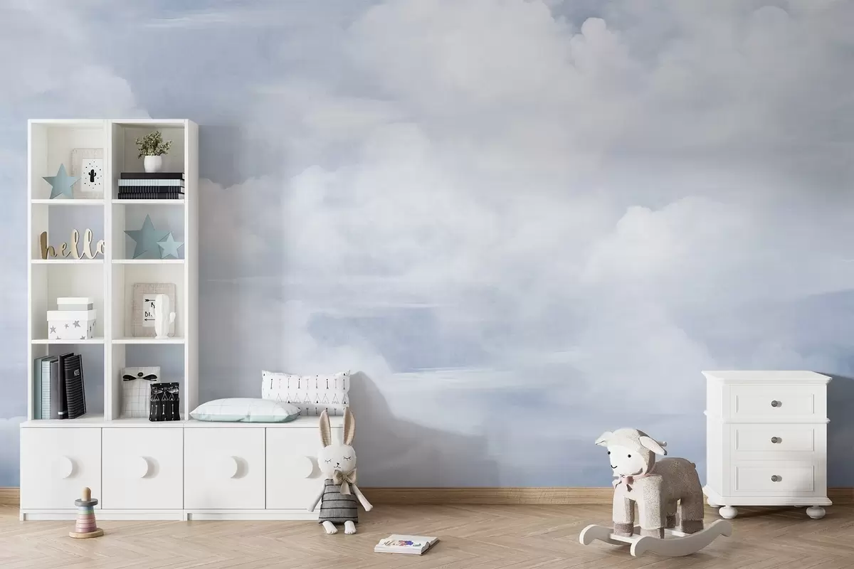 Тапете за зид Пастелно текстурирано небо испуњено белим облацима са меком и минималистичком естетиком бр. w09589