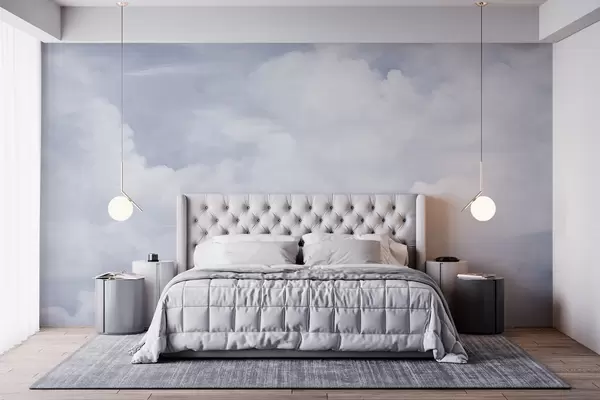 Тапете за зид Пастелно текстурирано небо испуњено белим облацима са меком и минималистичком естетиком бр. w09589