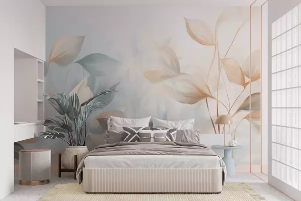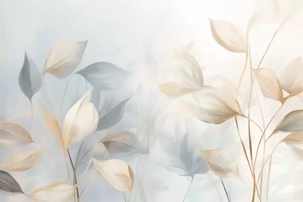 Тапете за зид Меки, нежни, провидни листови у пригушеним тоновима беж, брескве и бледоплаве, текстурирана пастелна уметност бр. w09607