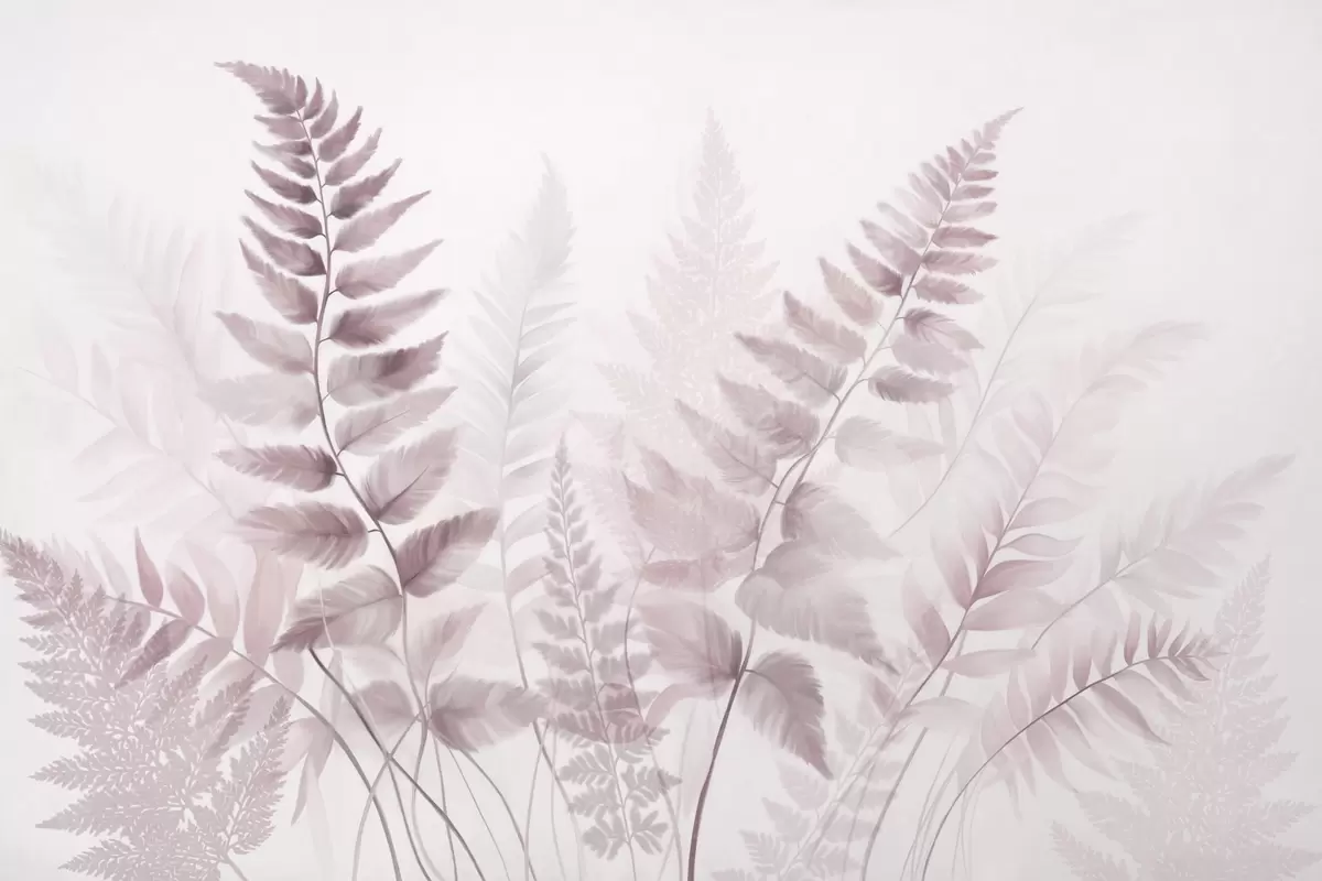 Тапете за зид Текстурирани сушени листови папрати у различитим нијансама ружичасте, са меком, светлом позадином у стилу акварела бр. w09615v2