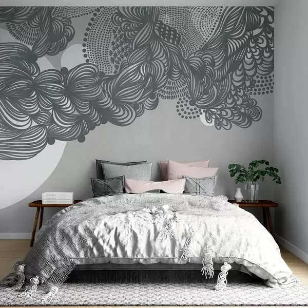 Тапете за зид Апстрактни текстурирани дизајн на сивој позадини, са замршеним линијским радом и тачкастим текстурама бр. w09621v1