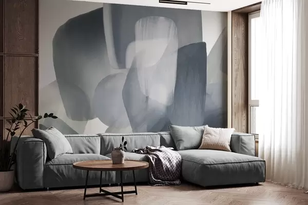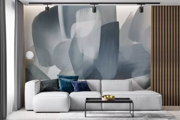 Тапете за зид Апстрактни текстурирани облици у пригушеним плавим и сивим бојама, са меким ивицама и преклапајућим слојевима бр. w09642v1