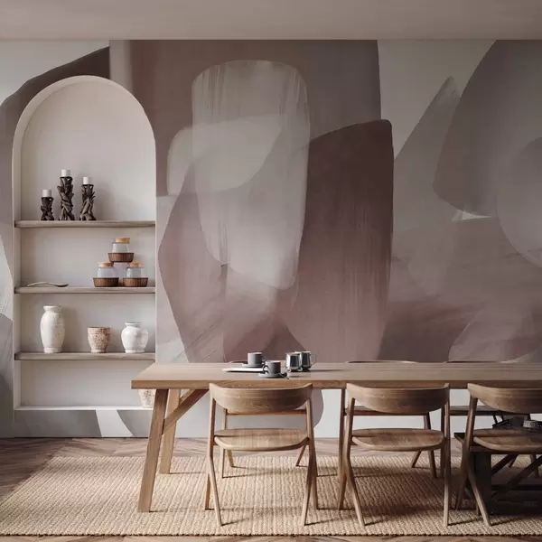 Тапете за зид Апстрактни текстурирани облици у пригушеним бордо и сивим бојама, са меким ивицама и преклапајућим слојевима бр. w09642v2