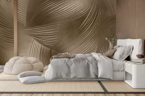 Тапете за зид Апстрактни отисак течних, закривљених линија у нијансама тамно смеђе, стварајући текстурирану, модерну уметност бр. w09646