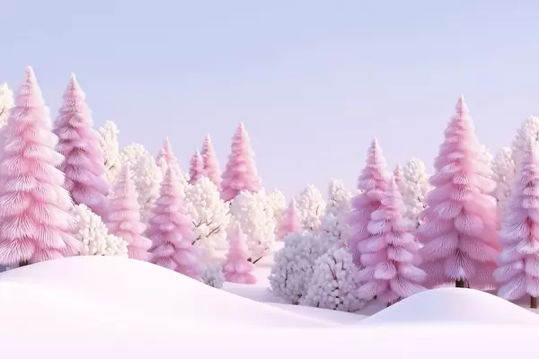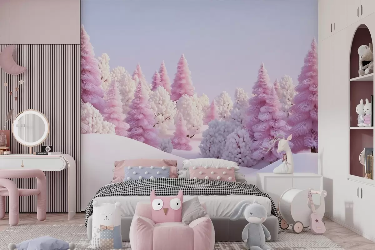 Тапете за зид Снежна зимска шума у ружичастим тоновима бр. w09654
