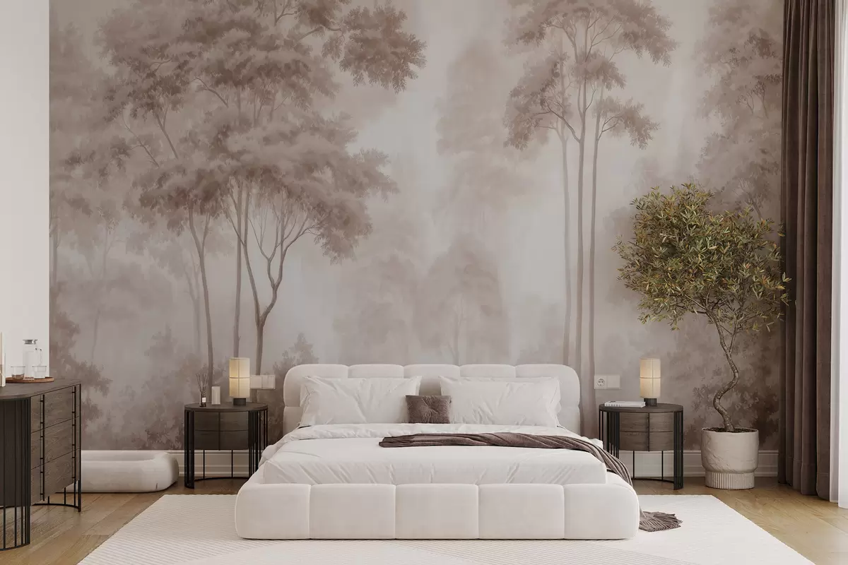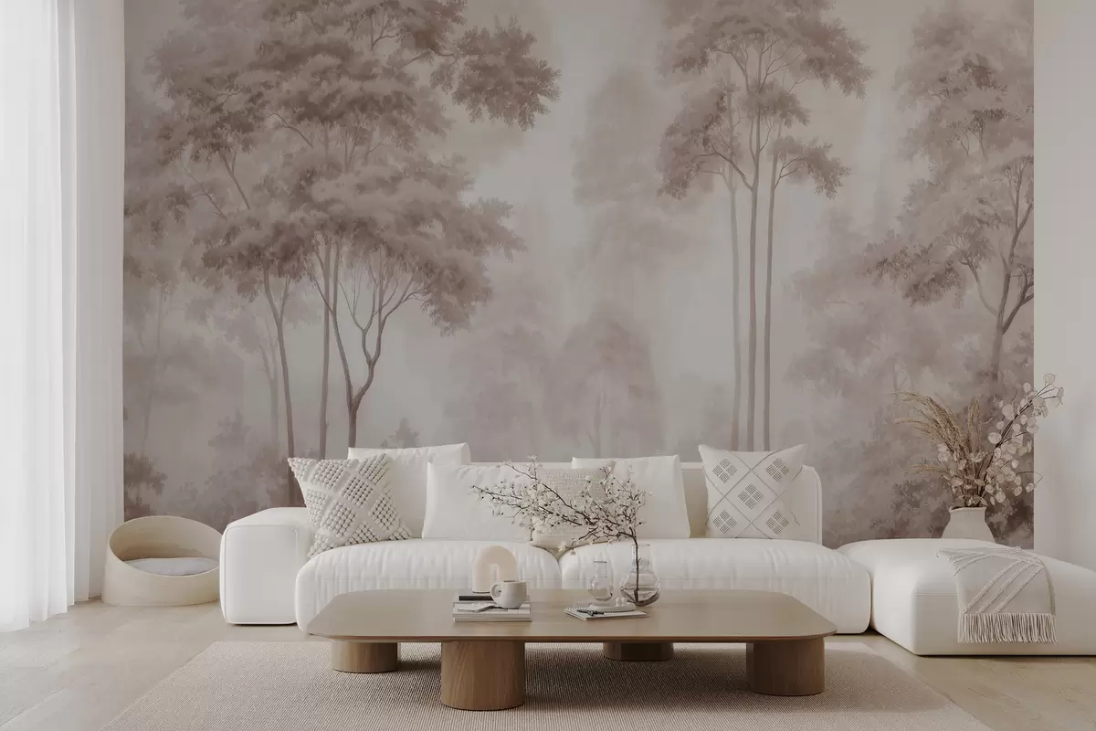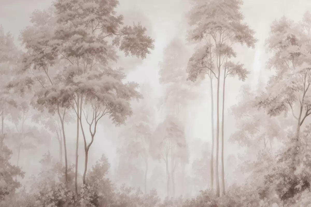 Тапете за зид Апстрактни шумски пејзаж у димљеним беж тоновима са осећајем дубине бр. w09657