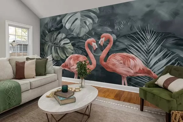 Тапете за зид Пар фламинга у тропским биљкама бр. w09687