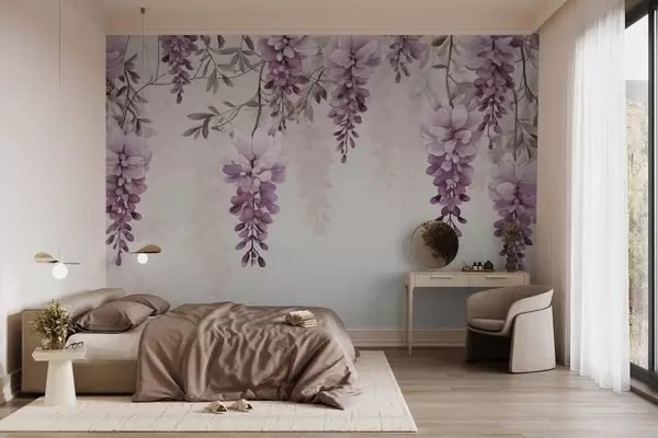 Тапете за зид Нежне, велике гране лаванде висе на зиду, имитација акварела бр. w09690