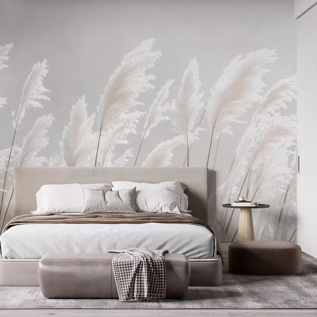 Тапете за зид Мекана бела пампас трава у нежном јутарњем светлу бр. w09717