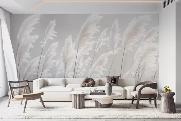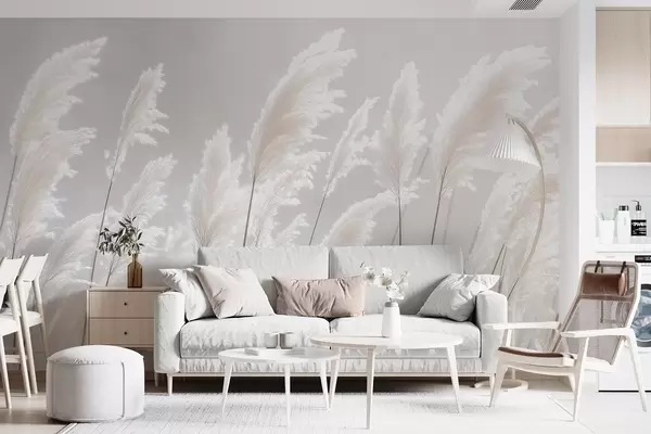 Тапете за зид Мекана бела пампас трава у нежном јутарњем светлу бр. w09717