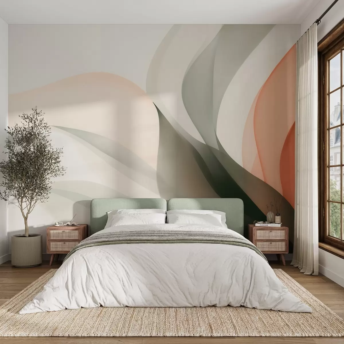 Тапете за зид Апстрактни пастелни таласи у наранџастим и зеленим тоновима бр. w09718