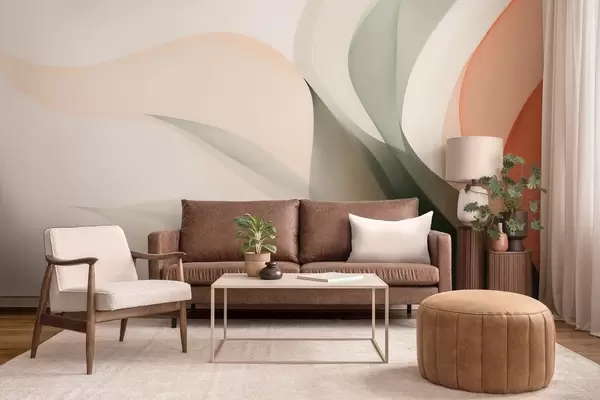 Тапете за зид Апстрактни пастелни таласи у наранџастим и зеленим тоновима бр. w09718