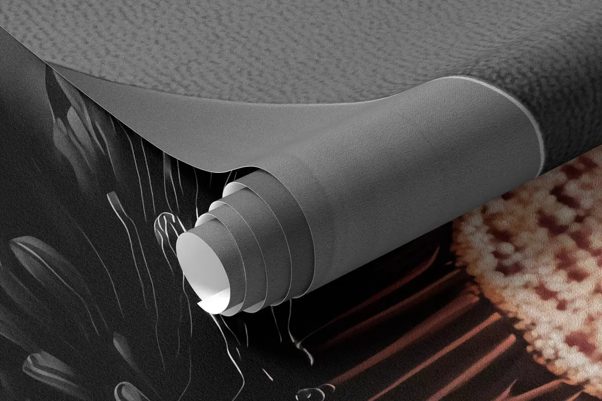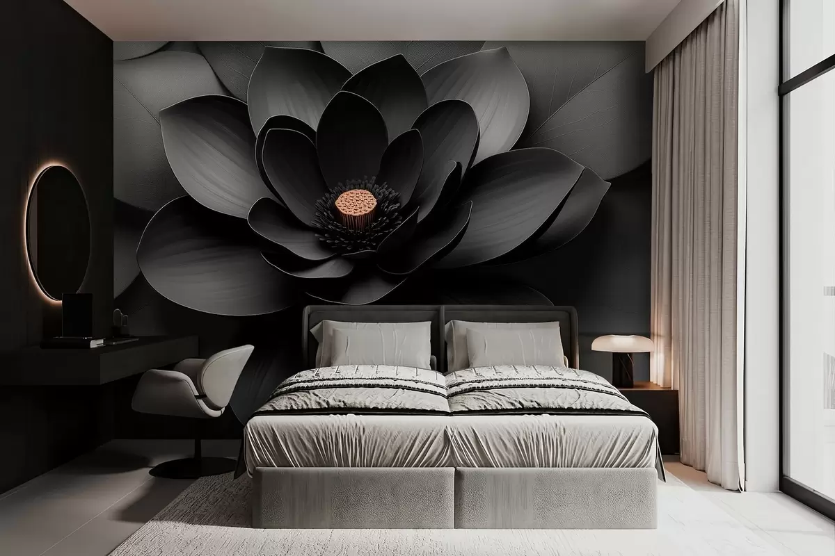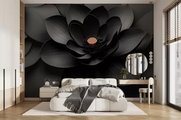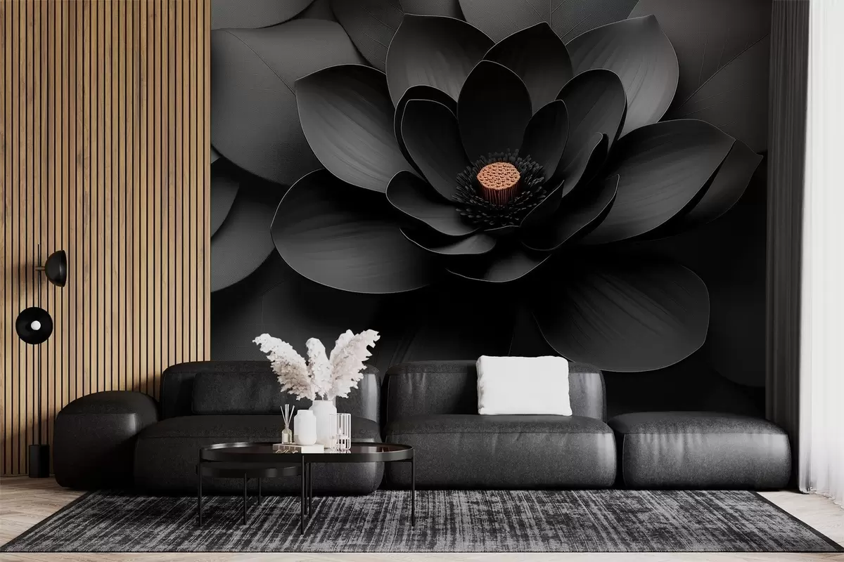 Тапете за зид Минималистички црни цвет са латицама и контрастним топлим средиштем бр. w09721
