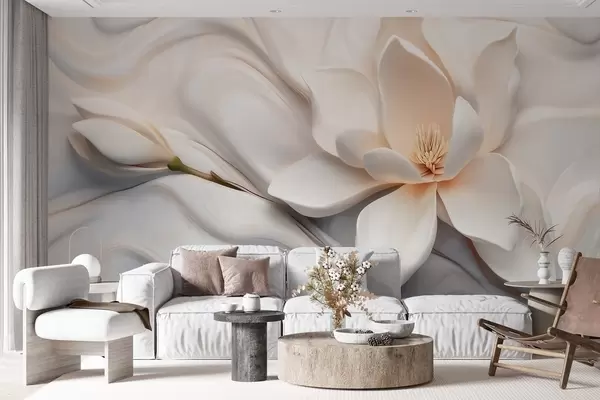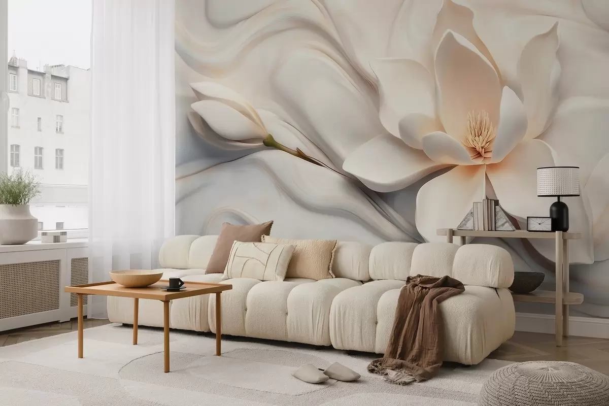 Тапете за зид Тродимензионална бела магнолија са имитацијом мермерне текстуре у рељефу бр. w09729