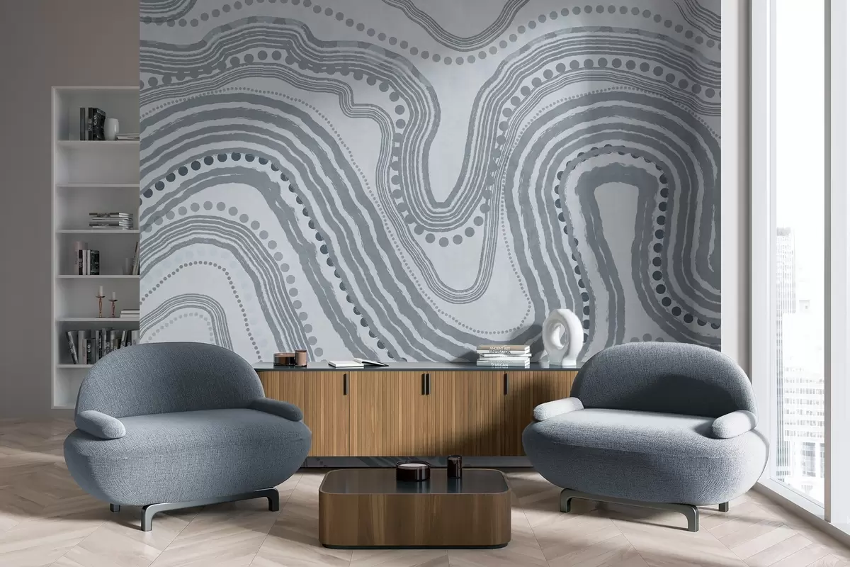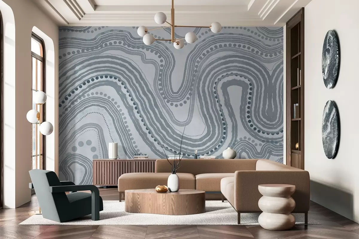 Тапете за зид Апстрактне плаве таласасте линије и тачке, модерна текстурирана уметност бр. w09747v3