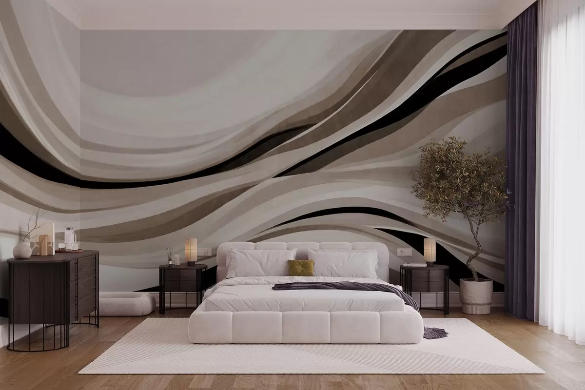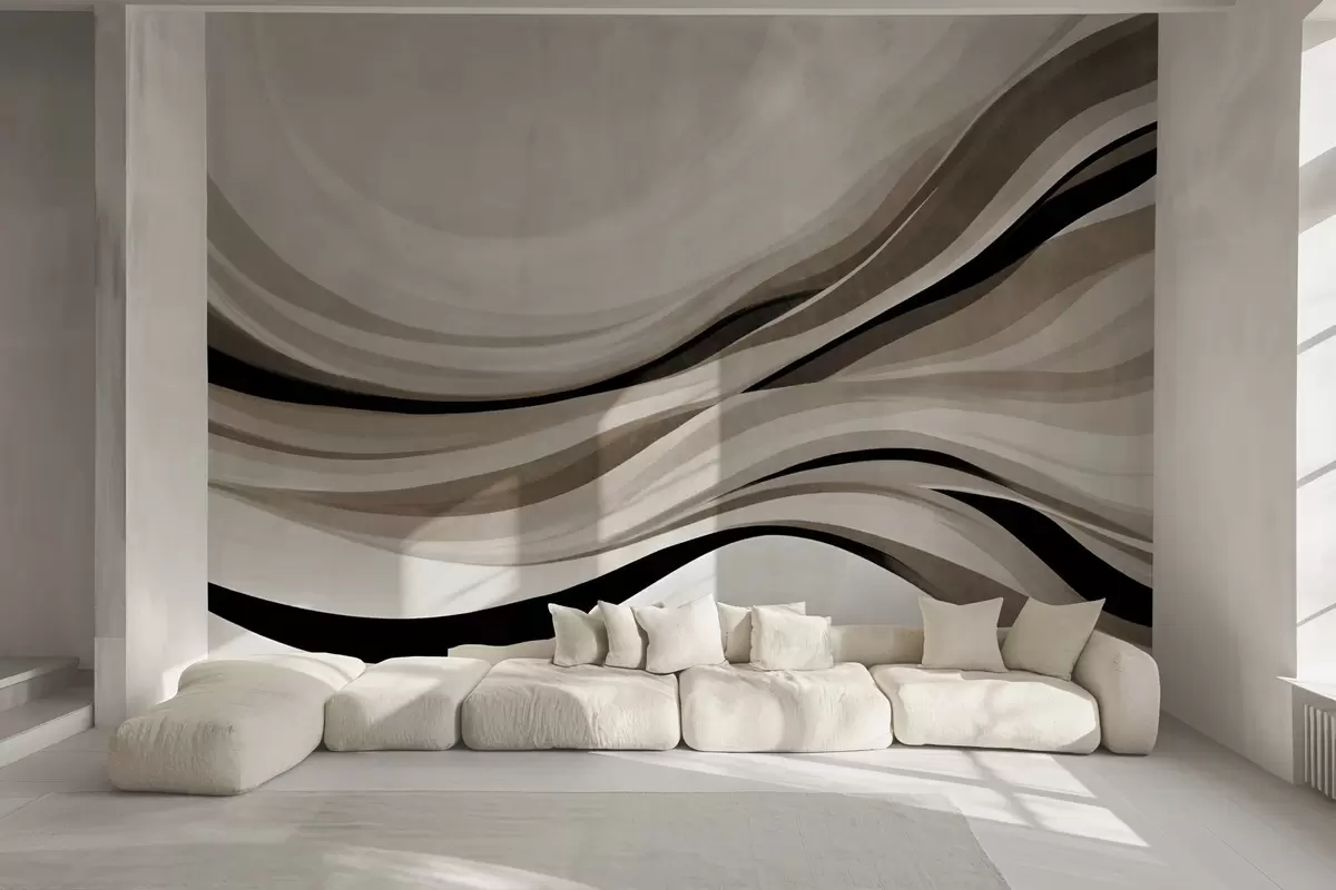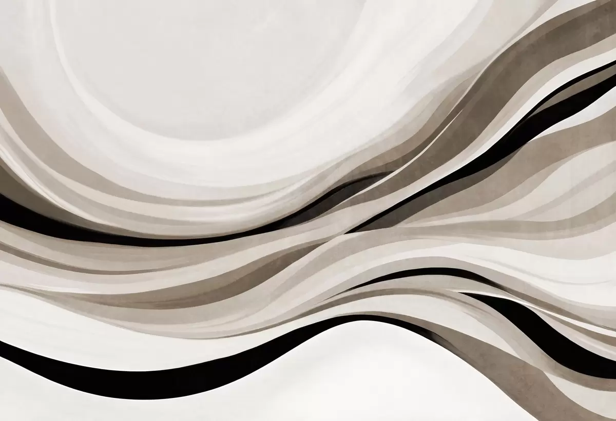 Тапете за зид Апстрактне таласасте линије у нијансама беж и црне на светлој позадини, текстурирана уметност бр. w09748