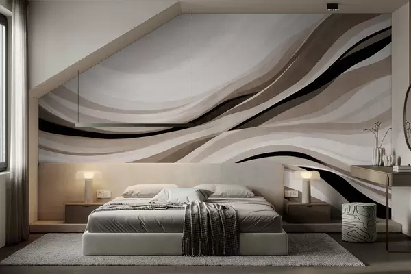 Тапете за зид Апстрактне таласасте линије у нијансама беж и црне на светлој позадини, текстурирана уметност бр. w09748
