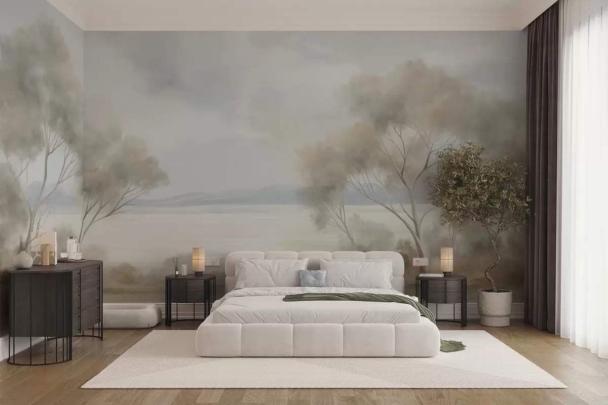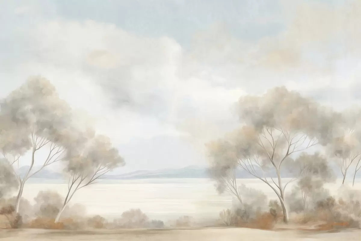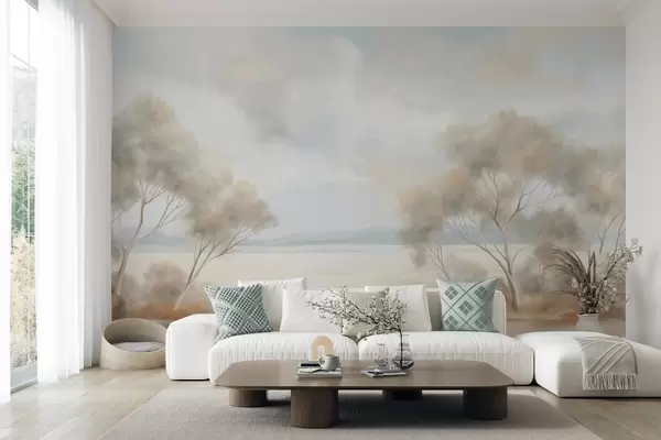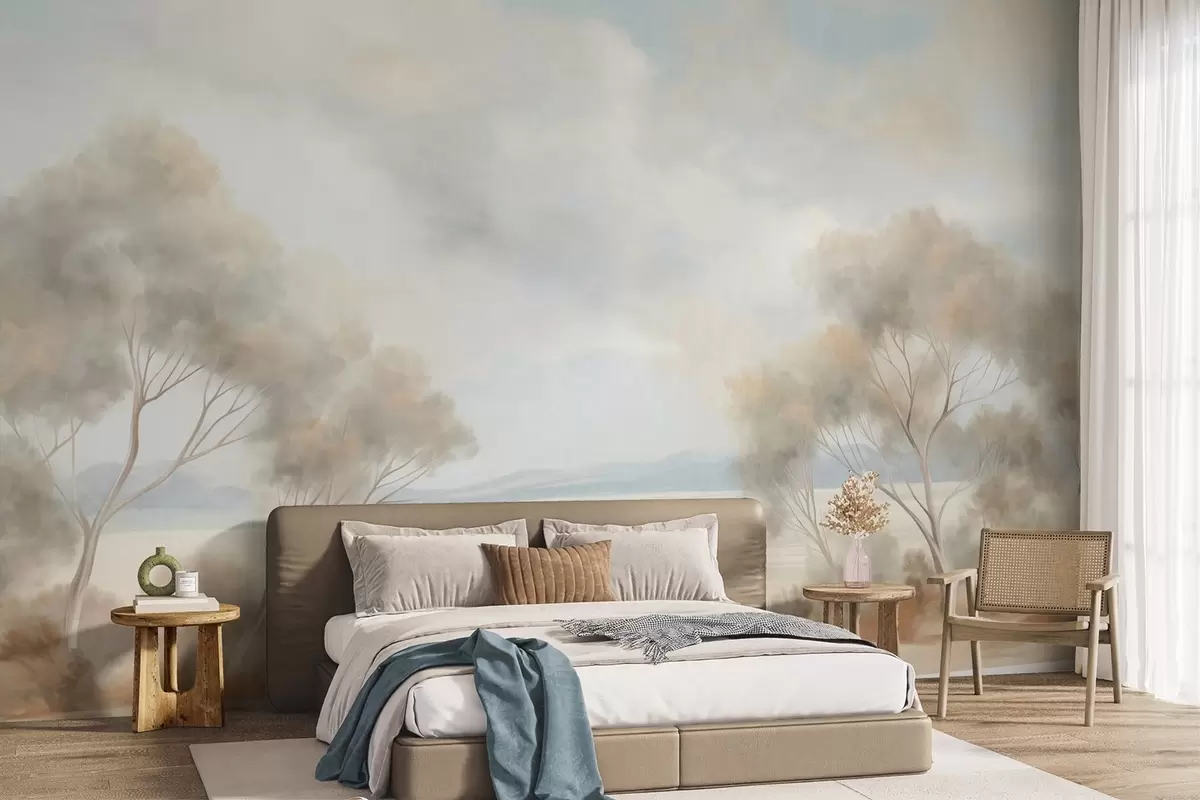 Тапете за зид Стил сликања текстурираног пејзажа са дрвећем под облачним небом бр. w09753