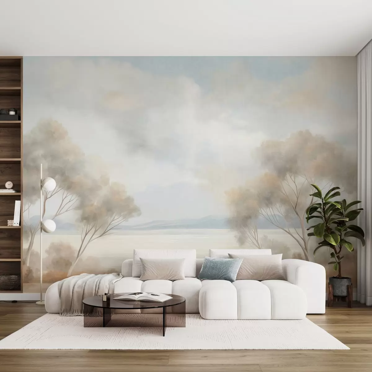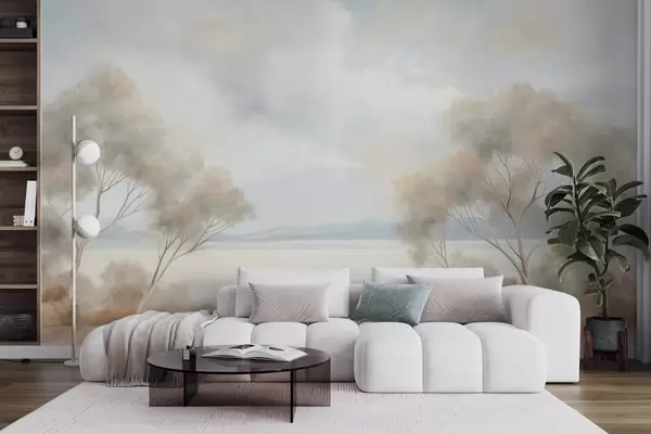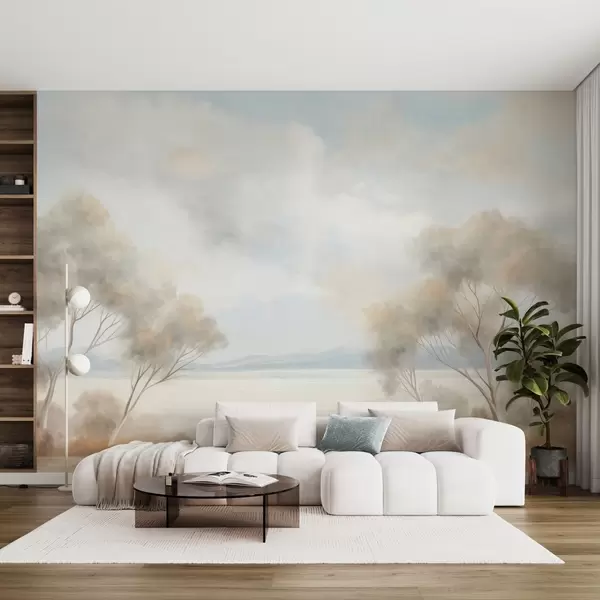 Тапете за зид Стил сликања текстурираног пејзажа са дрвећем под облачним небом бр. w09753