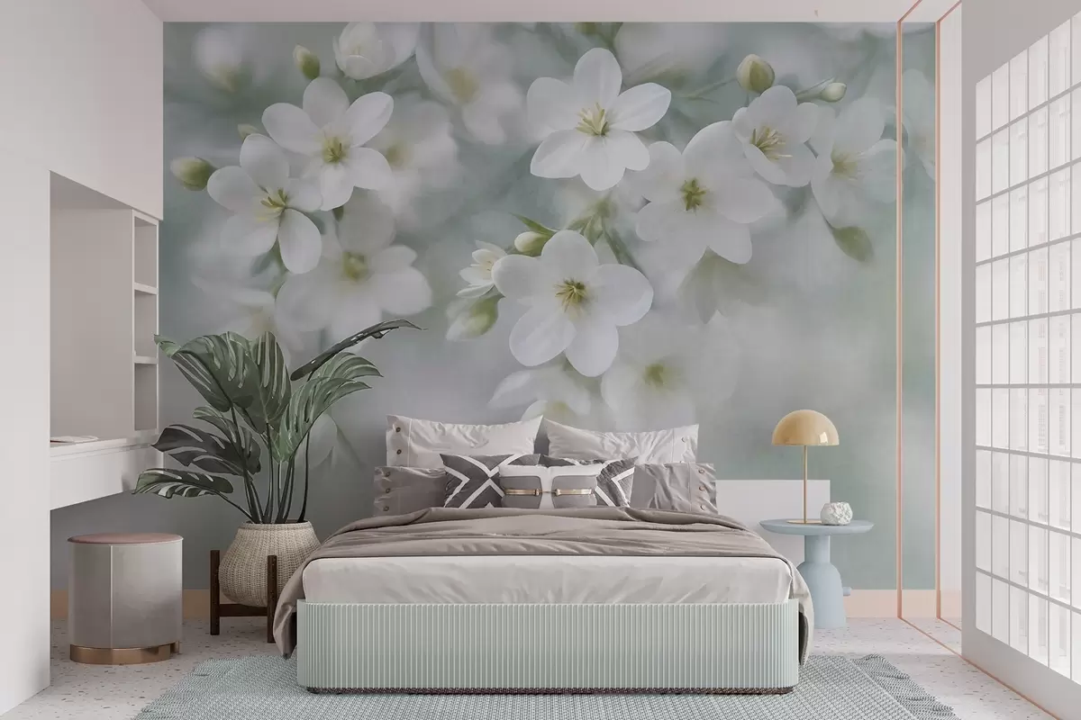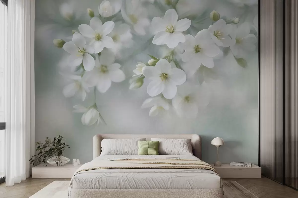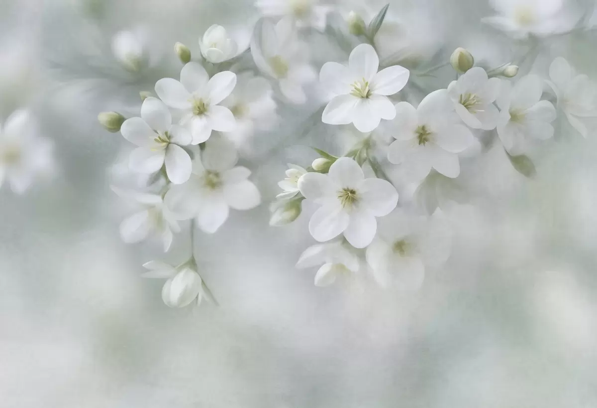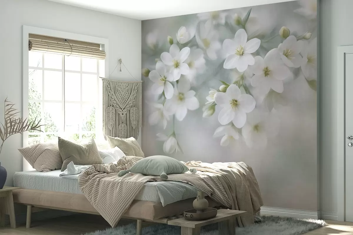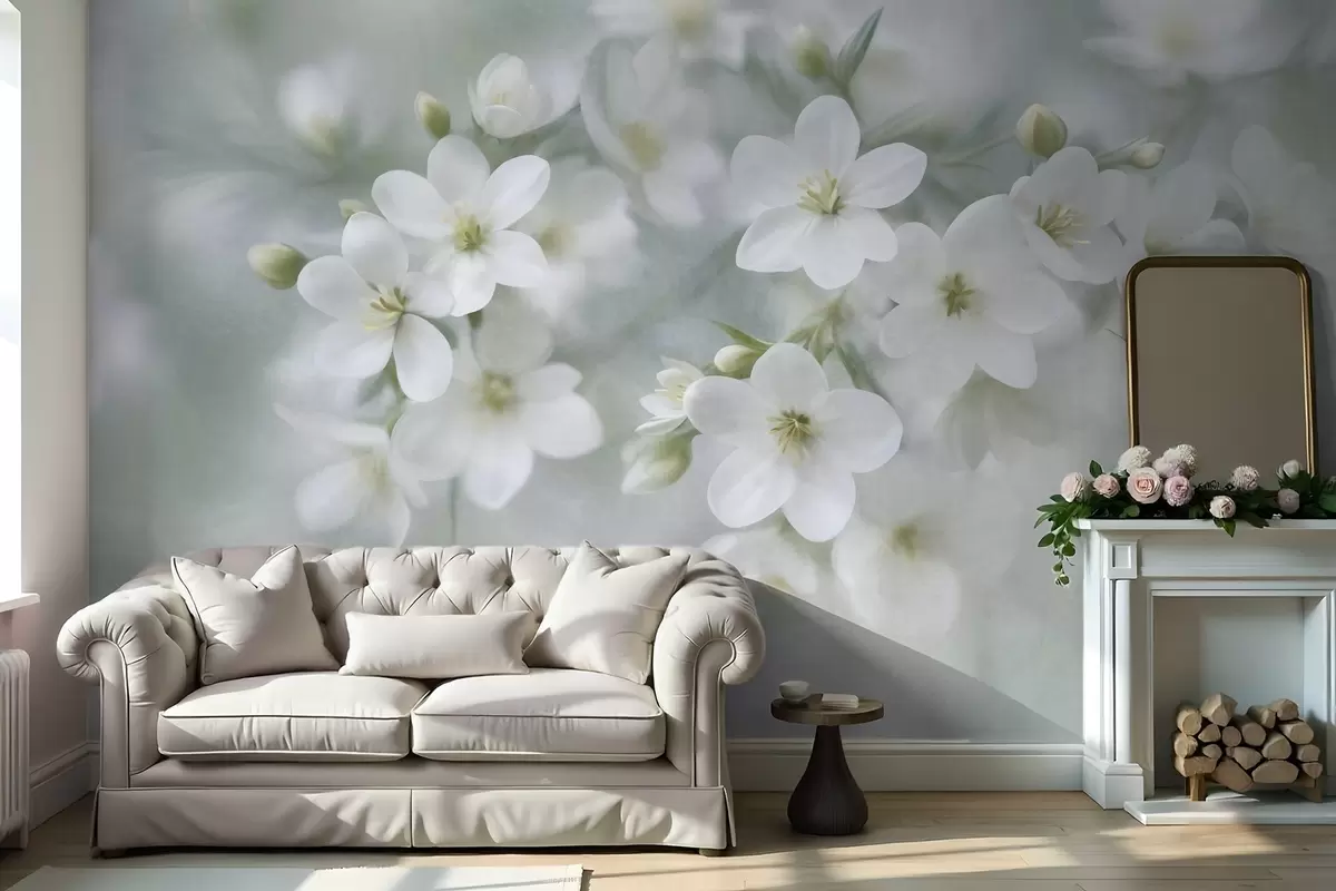 Тапете за зид Нежно текстурирано бело цвеће нежно замућено у позадини бр. w09759