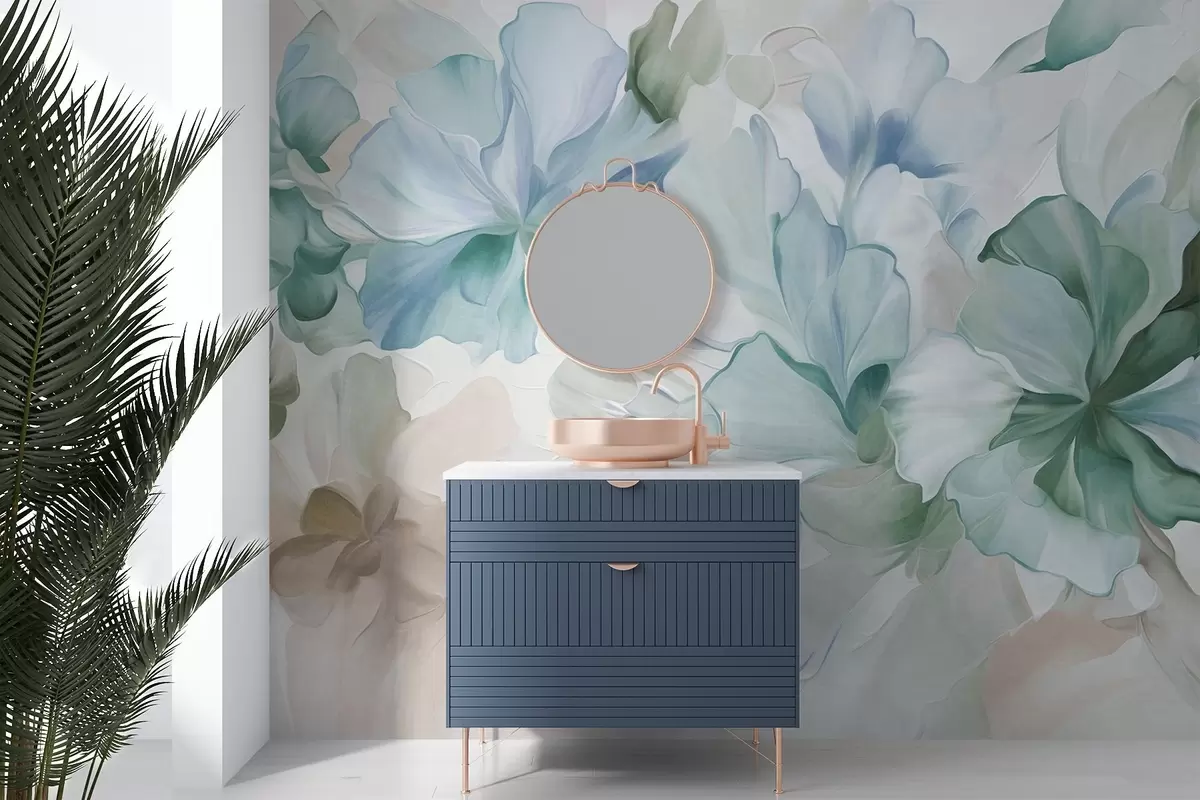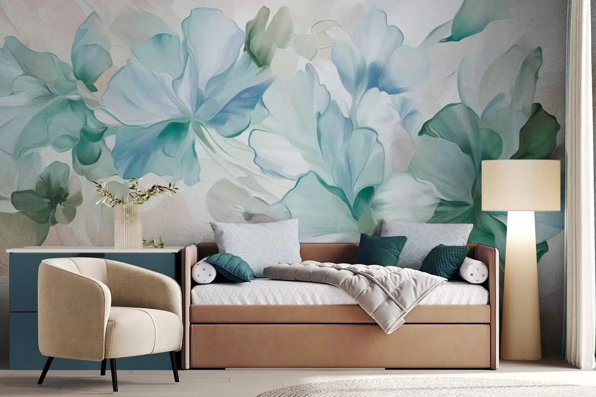 Тапете за зид Апстрактни фантастични цветови у нијансама зелене, плаве и беж у стилу сликања, текстурирана уметност бр. w09767v1