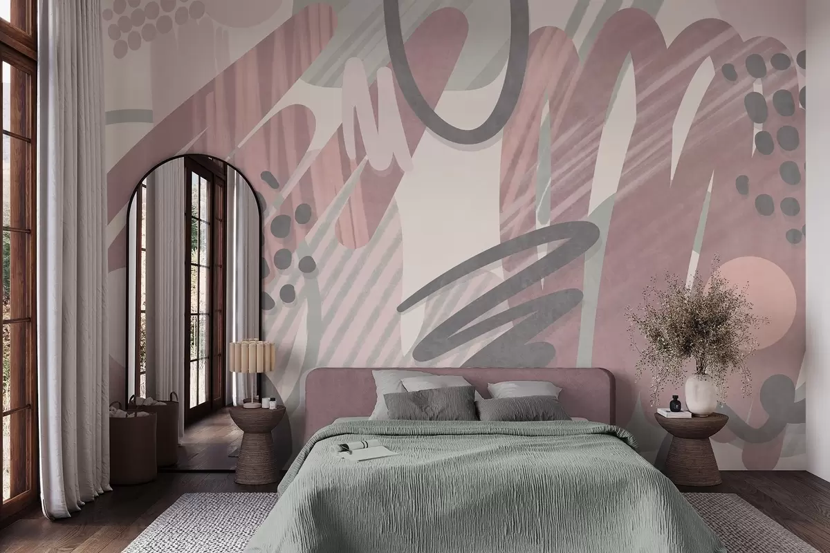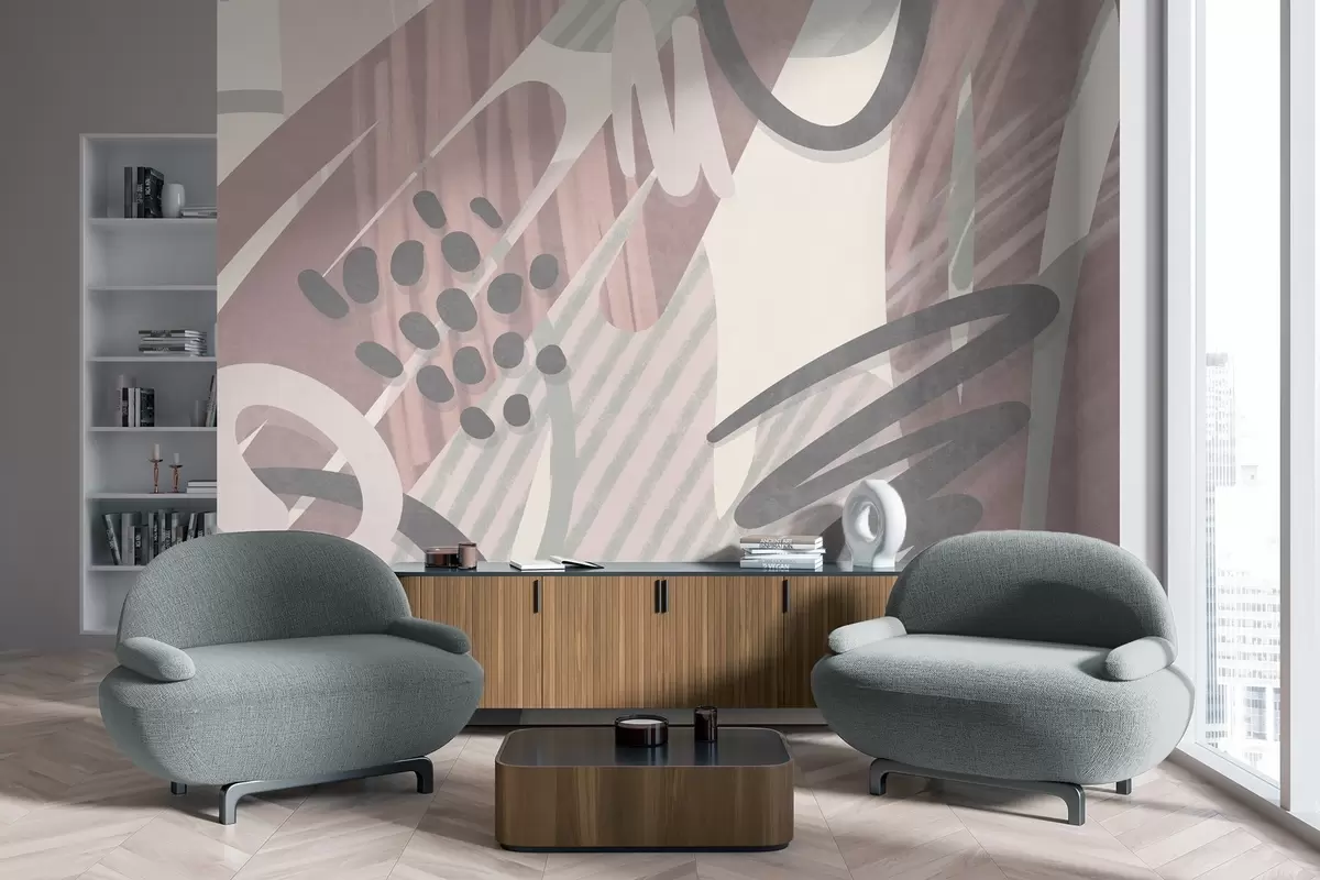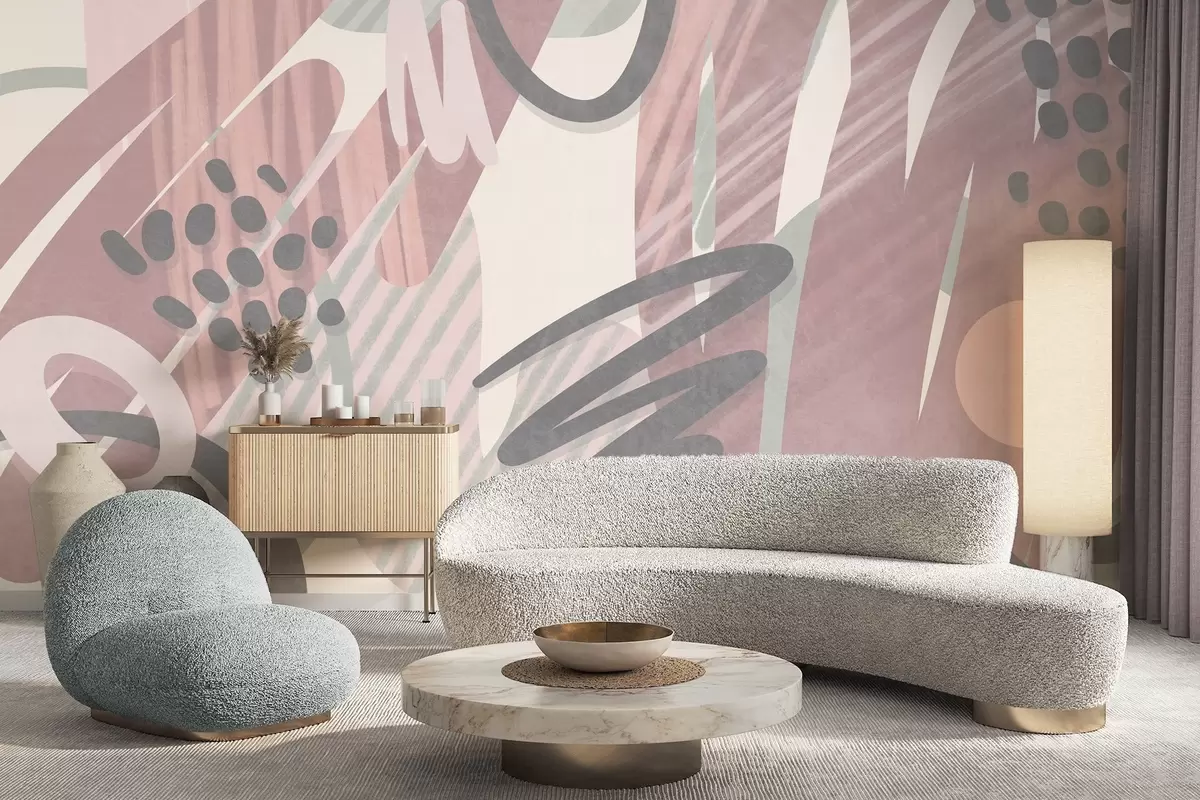 Тапете за зид Апстрактни текстурирани отисак са органским облицима, шарама и тачкама у пригушеним пастелним бојама бр. w09774v1