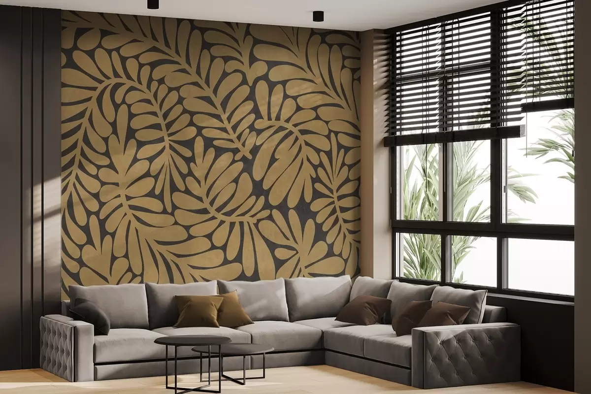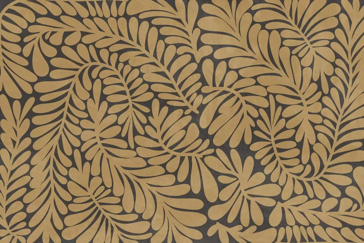 Тапете за зид Стилизовани листови жуте боје сенфа на тамно сивој позадини, текстурирана уметност бр. w09775