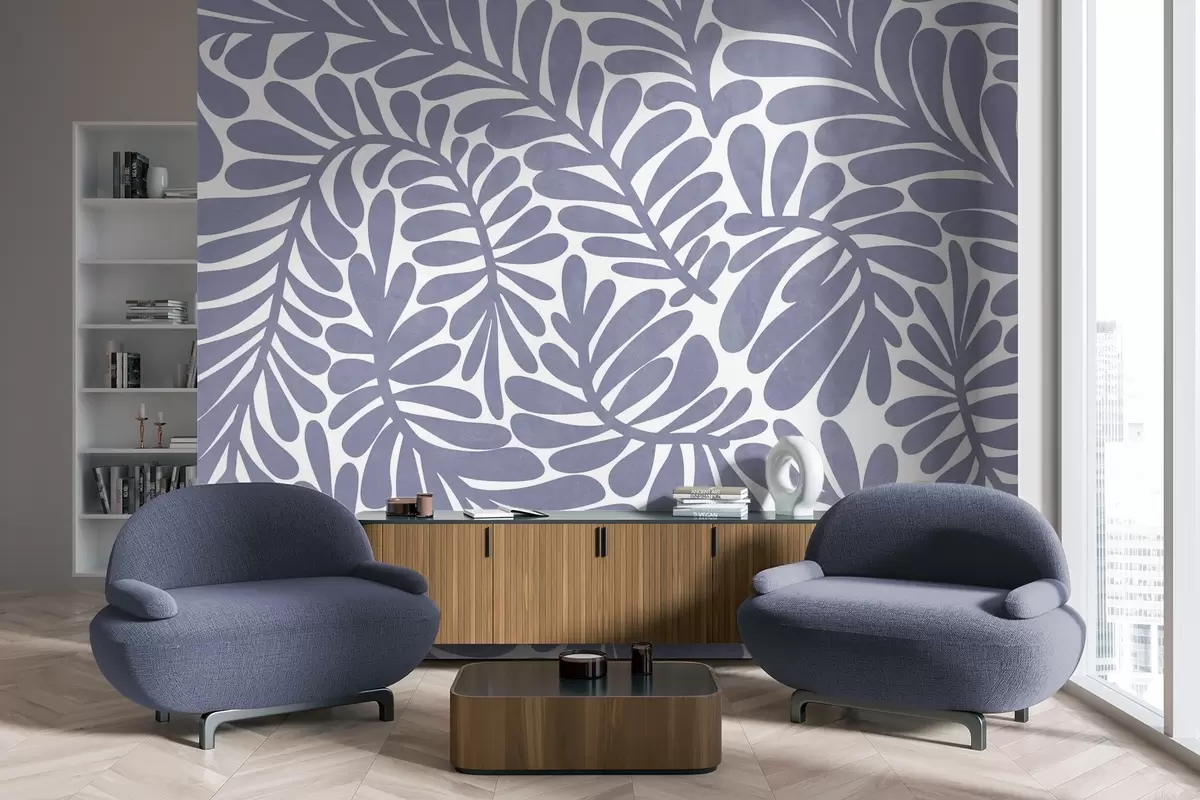 Тапете за зид Стилизовано светлоплаво лишће на светлој позадини, текстурирана уметност бр. w09775v1