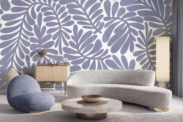 Тапете за зид Стилизовано светлоплаво лишће на светлој позадини, текстурирана уметност бр. w09775v1