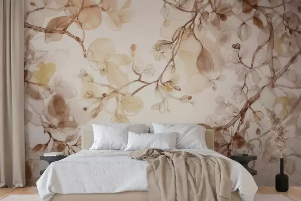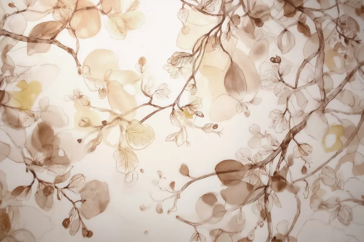 Тапете за зид Прозрачне висеће гране у беж тоновима у стилу акварела бр. w09795