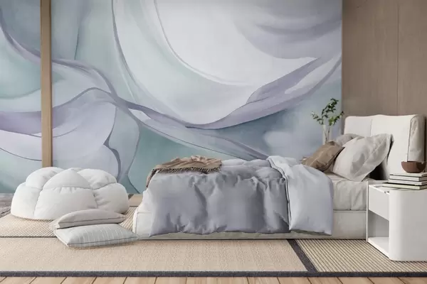 Тапете за зид Апстрактни текстурирани течни облици у нијансама плаве и сиве са нежним линијама бр. w09818v1