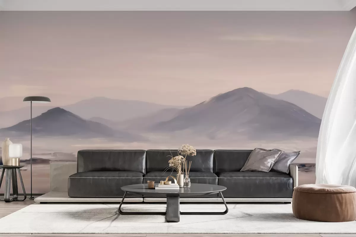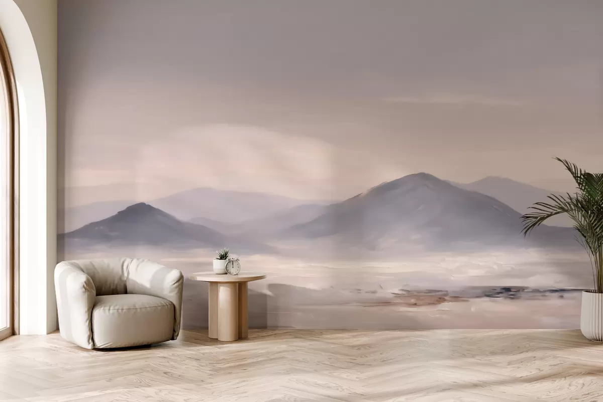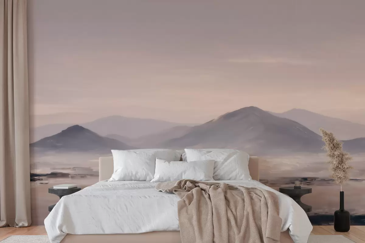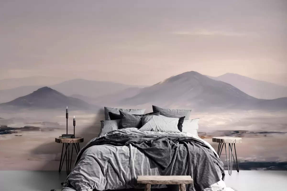 Тапете за зид Магловит планински пејзаж са меким прелазима светлости и ваздуха, са ефектом маске бр. w09844