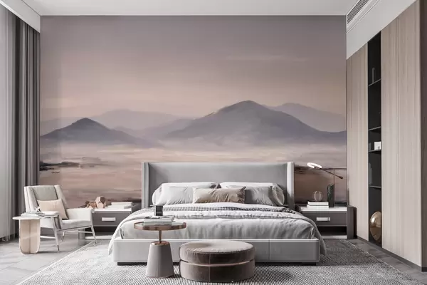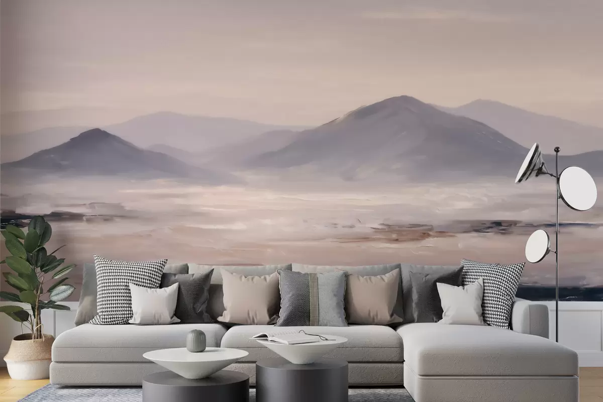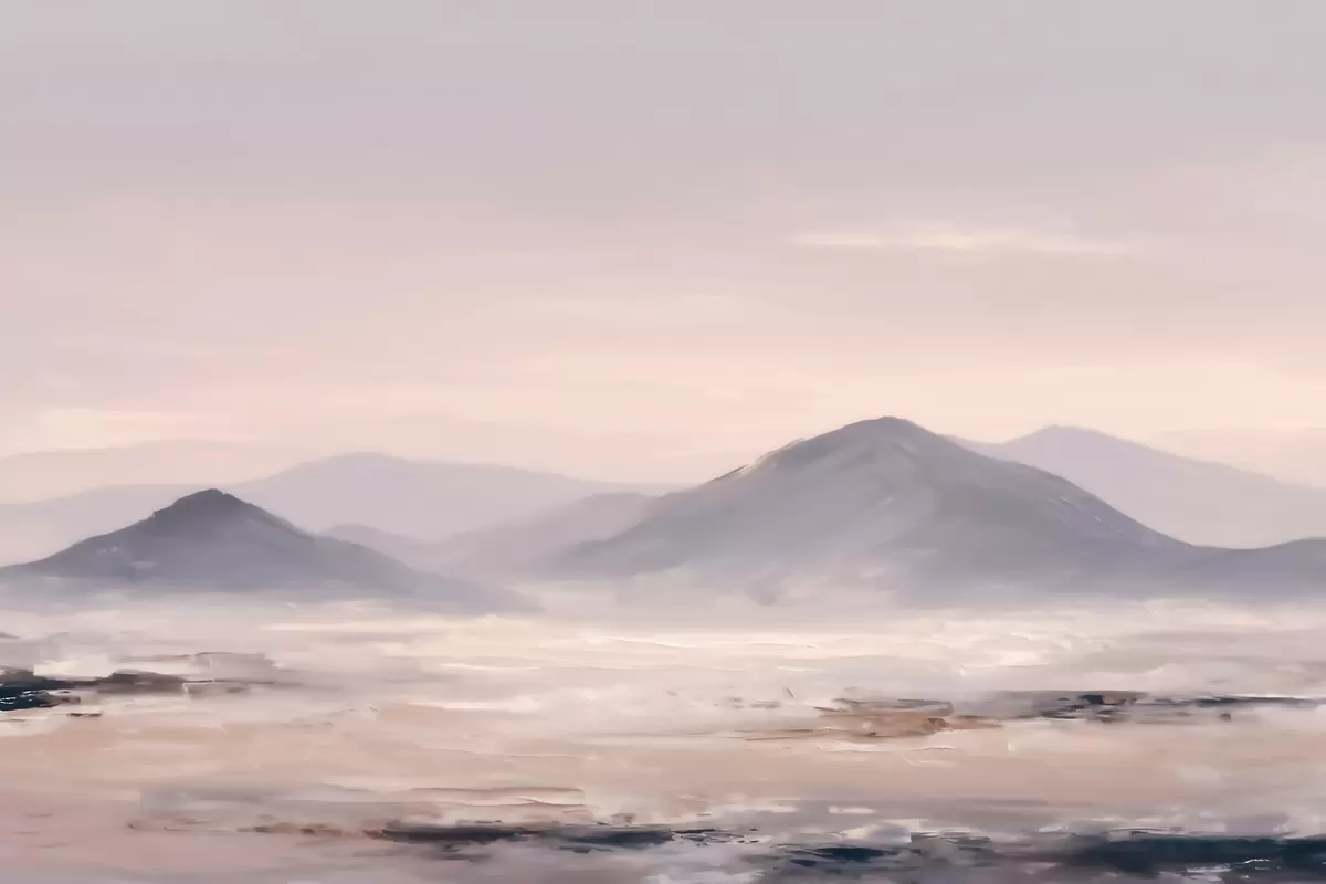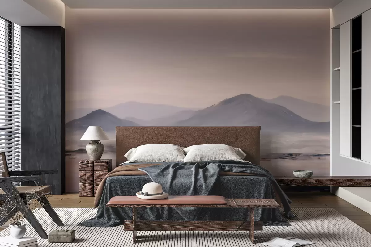 Тапете за зид Магловит планински пејзаж са меким прелазима светлости и ваздуха, са ефектом маске бр. w09844