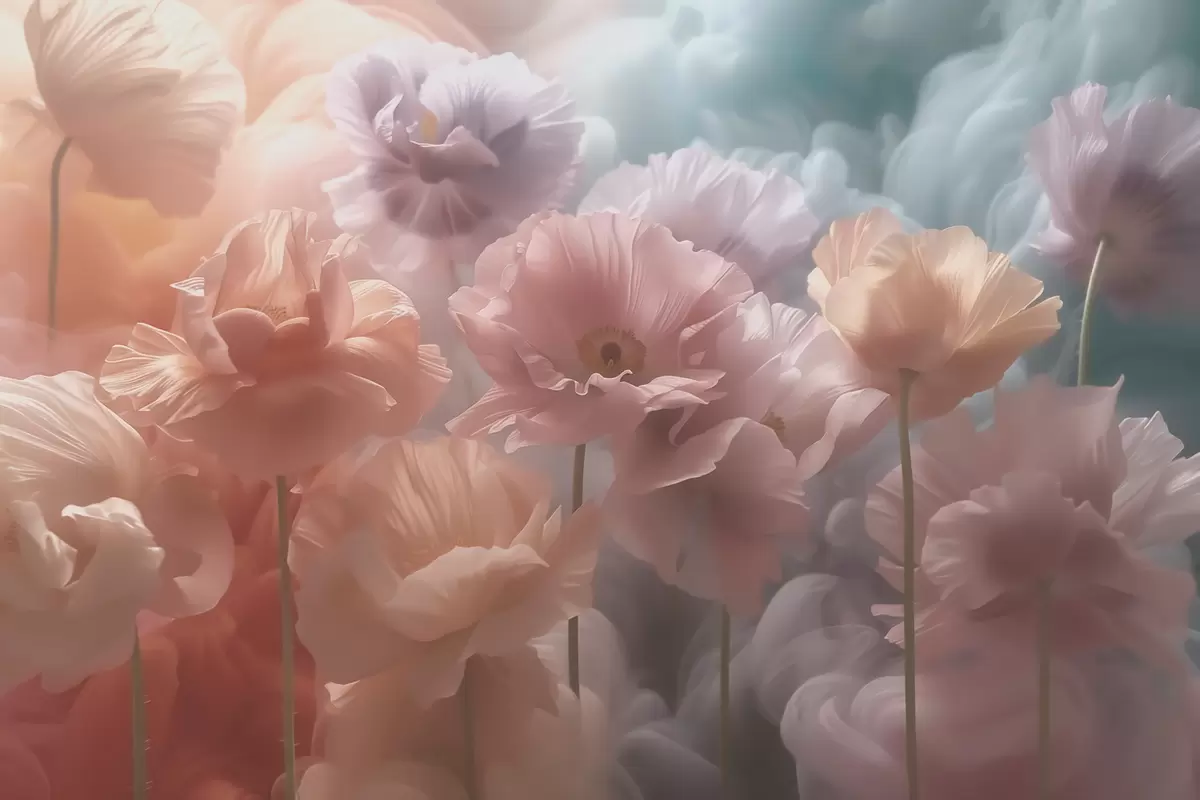 Тапете за зид Прозрачно цвеће са провидним латицама у меком јутарњем светлу бр. w09847