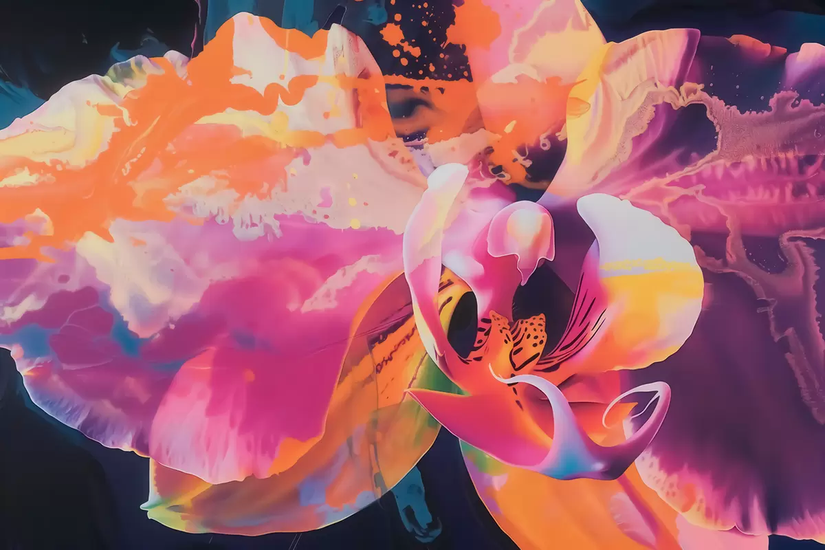 Тапете за зид Живописан апстрактни цвет орхидеје са богатим бојама и динамичним облицима у акварел стилу бр. w09855