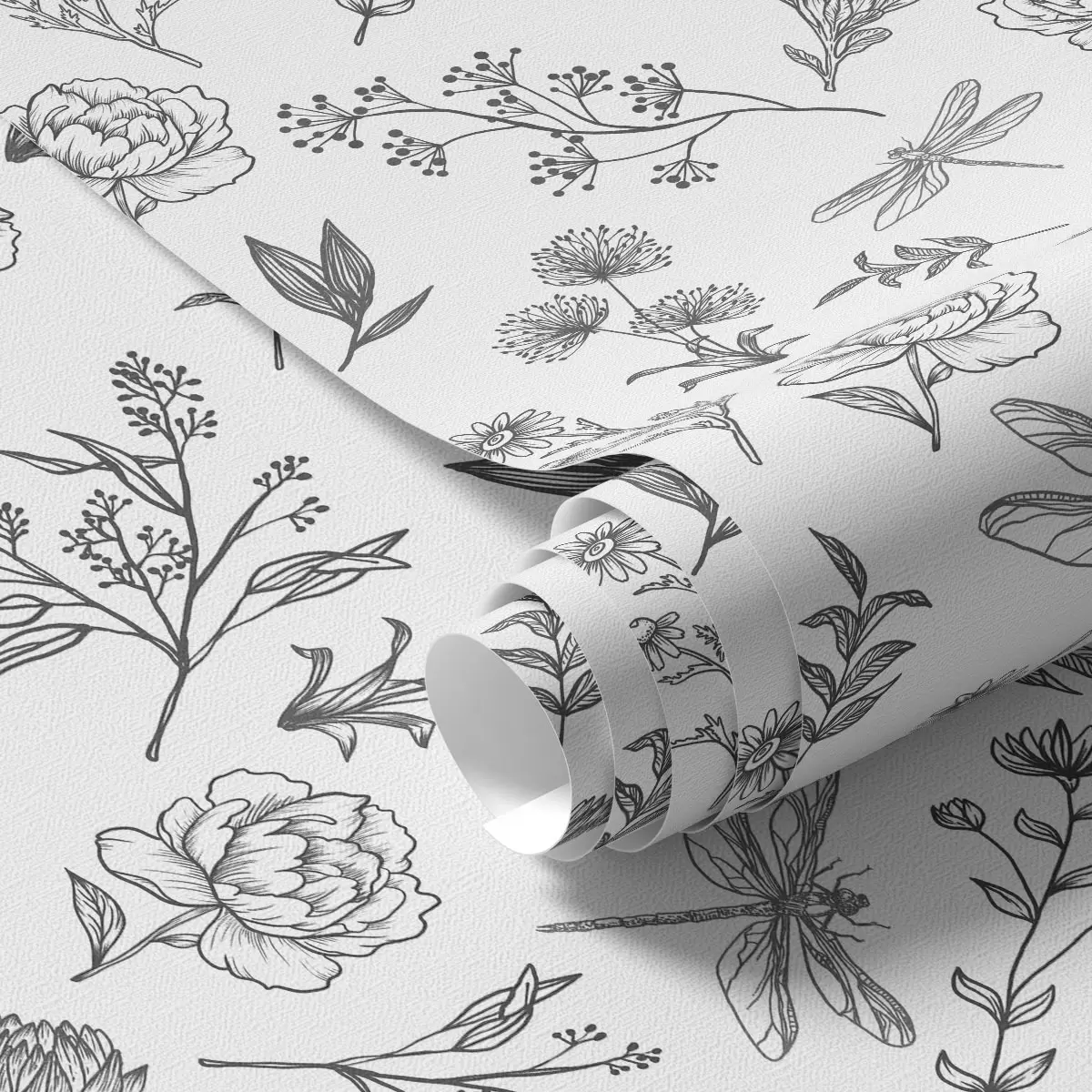 Tapeta Цвеће, лишће и вилини коњици на белој позадини бр. a00025v1